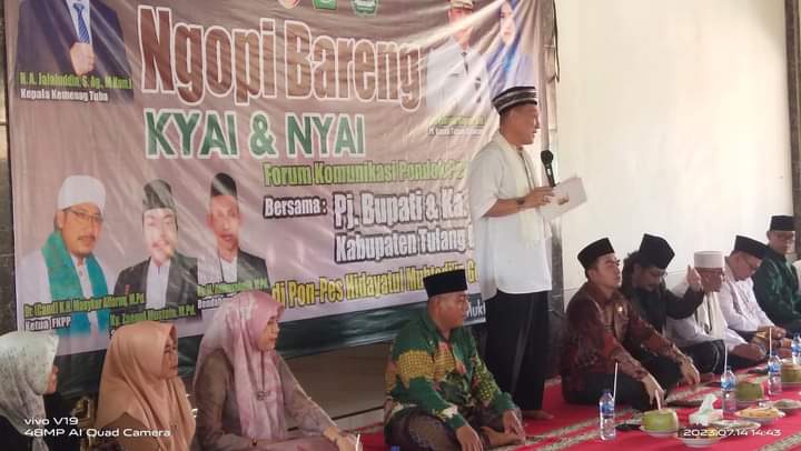 Kegiatan dilakukan dalam rangka meningkatkan tali silaturahmi antara Pemkab Tulang Bawang dengan Forum Komunikasi Pondok pesantren ( FKPP) yang bertajuk Ngopi Bareng Kyai & Bu Nyai di Pondok Pesantren ( Ponpes) Hidayatul Mubtadiin, Sido Mukti Gedung Aji Baru, Jumat (14/7/2023).