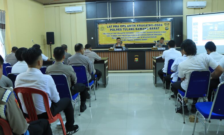 Kasi Humas Polres Tulang Bawang Barat Ipda Joni Arto, S.E, yang mewakili Kapolres Tulang Bawang Barat AKBP Ndaru Istimawan, S.I.K., mengatakan Polres Tulang Bawang Barat melaksanakan Lat Pra Ops Antik Krakatau tahun 2024. Kegiatan ini dilaksanakan supaya dapat meningkatkan kemampuan personil di dalam melaksanakan Operasi Antik Krakatau tahun 2024.