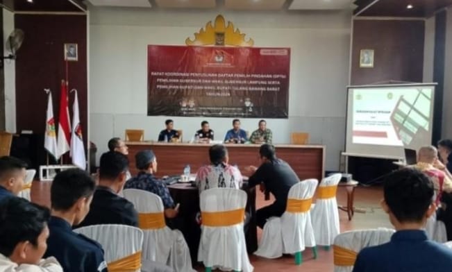 Layarberita.net | Tubaba– Komisi pemilihan umum (KPU) Tulangbawang Barat (Tubaba) Lampung menggelar Rapat Koordinasi Penyusunan Daftar Pemilih Pindahan (DPTb) Pemilihan Gubernur dan Wakil Gubernur Lampung Serta Pemilihan Bupati dan Wakil Bupati Tulangbawang Barat. Tahun 2024.