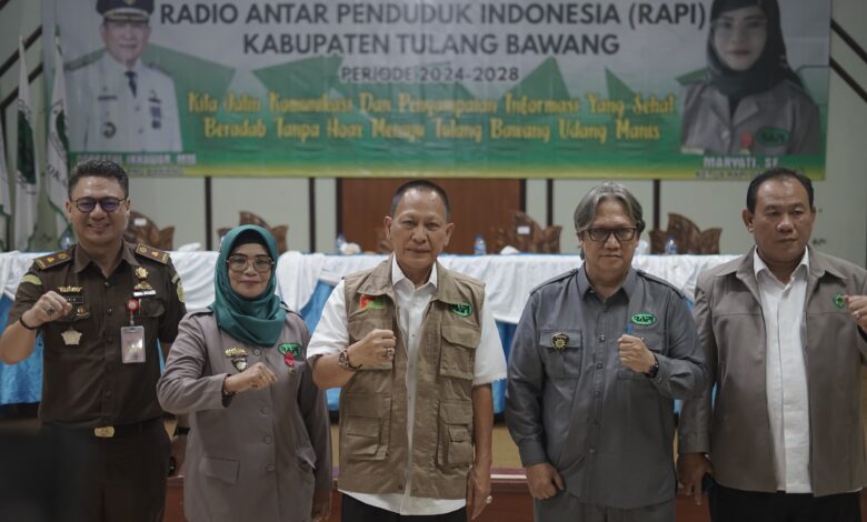 Layarberita.net- Pj Bupati Drs. Qudrotul Ikhwan menghadiri Pelantikan dan Pengukuhan Pengurus Wilayah 08 Radio Antar Penduduk Indonesia (RAPI) Kabupaten Tulang Bawang masa bakti tahun 2024 – 2028. Berlansung pada hari rabu (31/1) di Aula Islamic Center Menggala, Kabupaten setempat. Turut hadir pada acara sejumlah Forkopimda plus, Pejabat Pimpinan tinggi pratama di lingkup Pemerintah daerah, Ketua Rapi Provinsi Lampung Maryati SE,…